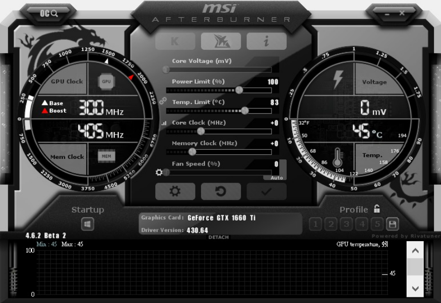 好用的顯卡超頻工具AfterBurner最近更新了,版本號4.6.2 Beta2,該版針對了RTX Super系列以及AMD RX 5700 系列增加了電壓控制,另外也改善了硬體監控模組與插件。