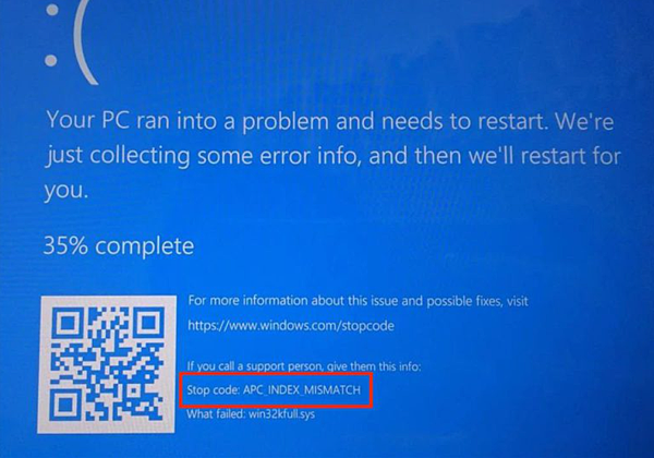 微軟說安裝有問題的更新後,部分應用程式嘗試用某些品牌印表機列印時,會出現藍屏當機標示APC_INDEX_MISMATCH藍屏當機。