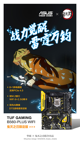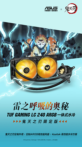 華碩最近在中國出了鬼滅之刃整套限定版系列,包括TUF Gaming RTX 3060顯示卡、TUF B560 PLUS WIFI主機板、TUF Gaming GT501機殼、RT-AX86U路由器、 TUF Gaming 240 LC ARGB CPU水冷散熱與耳機滑鼠等周邊產品。華碩鬼滅之刃限定版,採鬼滅各主角的代表顏色為外觀配色,其餘都與原來的型號款相同規格,這些聯名限定品是否會在台灣賣還不知道?