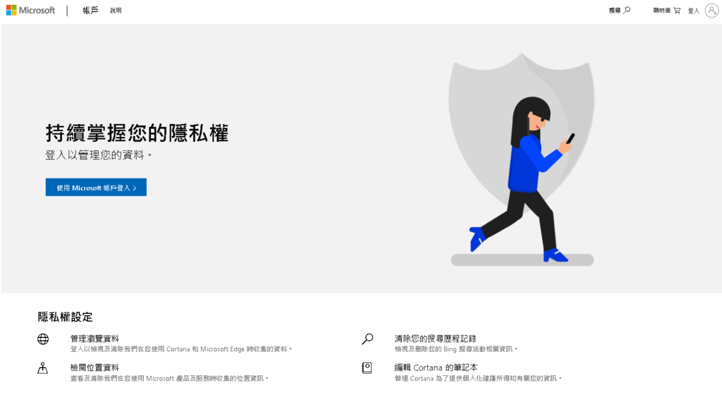 5 - 花點時間查看(持續掌握您的隱私權)上的信息,然後點擊“使用Microsoft登錄”按鈕。