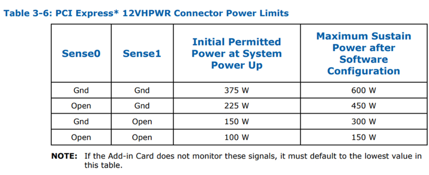 按照上表顯示,Open對應的是高電平,Gnd對應的是低電平,當S3和S4也就是Sense0和Sense1都是高電平時,那就代表12VHPWR接口的功率是150W規格,倘若兩個接口都是低電平時,這就表示12VHPWR接口可提供的功率為600W。因此如見通過更換模組線來提供12VHPWR接口的電源產品,都會不約而同將S3和S4接口連接到地線,這樣即使用到PCI-E 5.0顯卡,顯卡也能按照600W需求從電源取電。然而由於這樣的電源沒有連接S1和S2,因此無法實現顯卡與電源之間的工作狀態通訊,無法雙方配合工作,因此這樣的電源只能滿足PCI-E 5.0顯卡的供電需求,算不上是PCI-E 5.0顯卡的最佳搭檔。