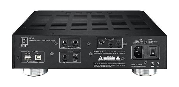 KECES P14不是旗艦實際的分量驚人。原廠不僅為它配置了全鋁機身,下方也用上了講究的避震腳錐,機內嚴選的電源用料也是滿滿,它內部有顆大尺寸環形變壓器以及電源線路讓P14的機身就重達7公斤。在支援性方面,最新版P14共具有4組獨立直流電輸出,所有輸出端子都位於背板,其中2組是搭配前面板上的獨立圓形錶頭,可顯示當下輸出的電流安培值。而這4組的直流電輸出之規格,分為Zone 1提供5V、7V、9V、12V,電流為4A。Zone 2提供12V、15V、19V、24V,電流為6A。Zone 3提供5V、9V,電流為2A,以及Zone 4提供USB 5V電流為2A,可用性相當廣泛。