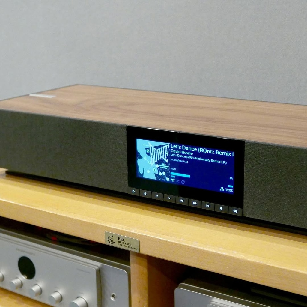 Cambridge EVO One在造型設計方面保留一貫歐陸風格,配合榮獲Red Dot大獎的Ged Martin在倫敦負責外觀設計,讓EVO One揉合古典和現代風格於一身, EVO One整個機箱以蜂巢式柵格金屬網罩加強機身扎實程度,在外圍以面網包覆,並在正面配有1280 X 480彩色顯示屏幕,加上機頂飾以FSC認證的胡桃木,讓EVO One大方得體,且橫向的6.8吋IPS TFT顯示幕,更備有大型VU錶、專輯封面和數字時鐘錶面多個版面選擇,用家可以根據自己需要切換至所需顯示,同時Cambridge為了讓EVO One在功能上媲美原廠高階機種,除了為它配備先進有效的串流播放系統外,EVO One還配備類比和數位音頻輸入,兩組類比輸入的其中一組是MM唱頭輸入,因此EVO One無論是使用唱盤還是CD播放機都可以,數位輸入除了光纖之外,還特設音頻回傳eARC機能的HDMI端子,同時備有藍牙接收以及USB的SSD硬碟訊號輸入,且內置DAC支援32bit/192KHz數位Hi-Res訊號,用途相當廣泛。當然EVO One作為串流播放機,連上網路後不必其它額外訊源,只要做好網路設定之後便可以串流音樂或電台廣播,正面彩色顯示幕更會提供音樂重播的相關訊息。